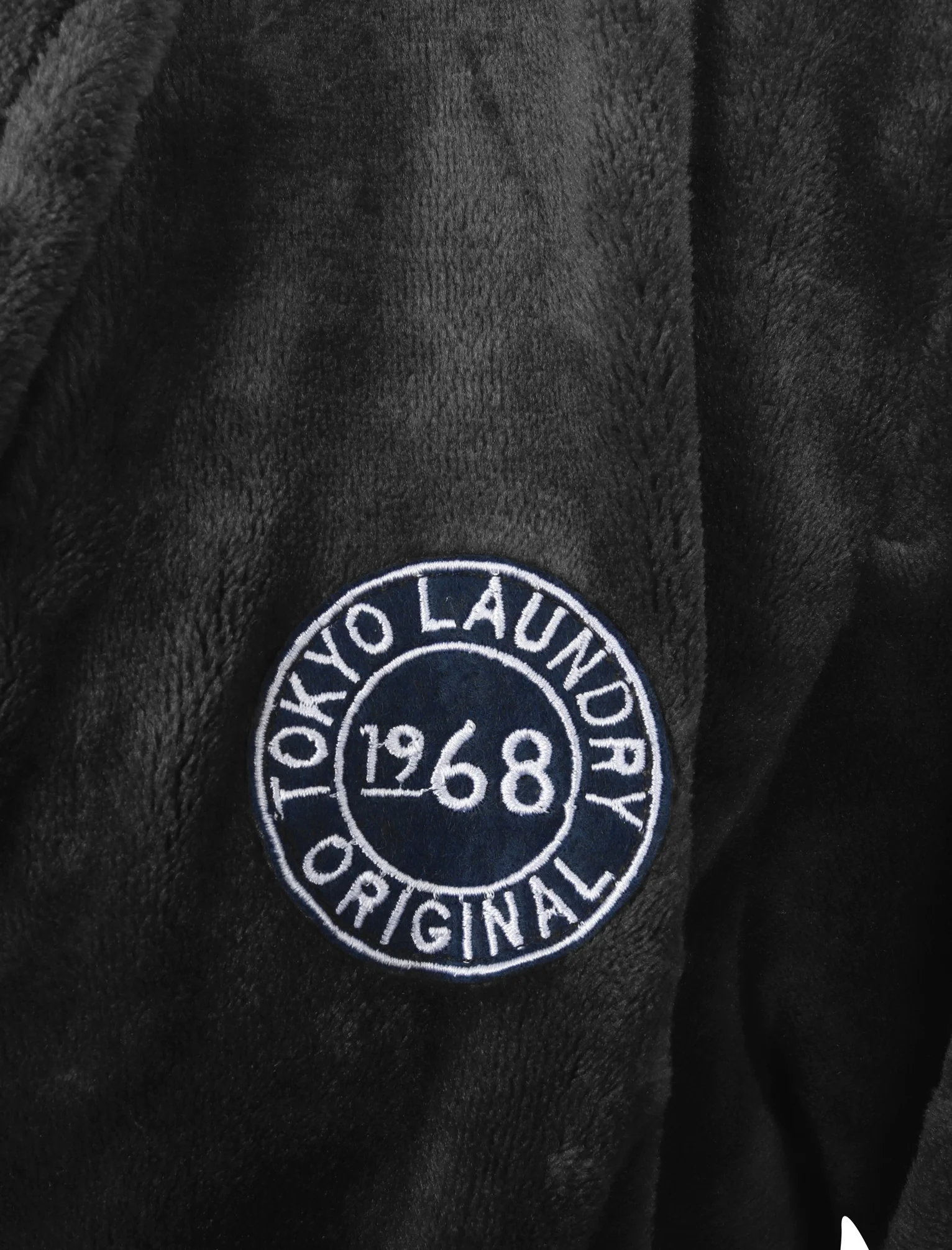 Men's Alps Soft Fleece Dressing Gown with Tie Belt in Dark Grey - Tokyo Laundry