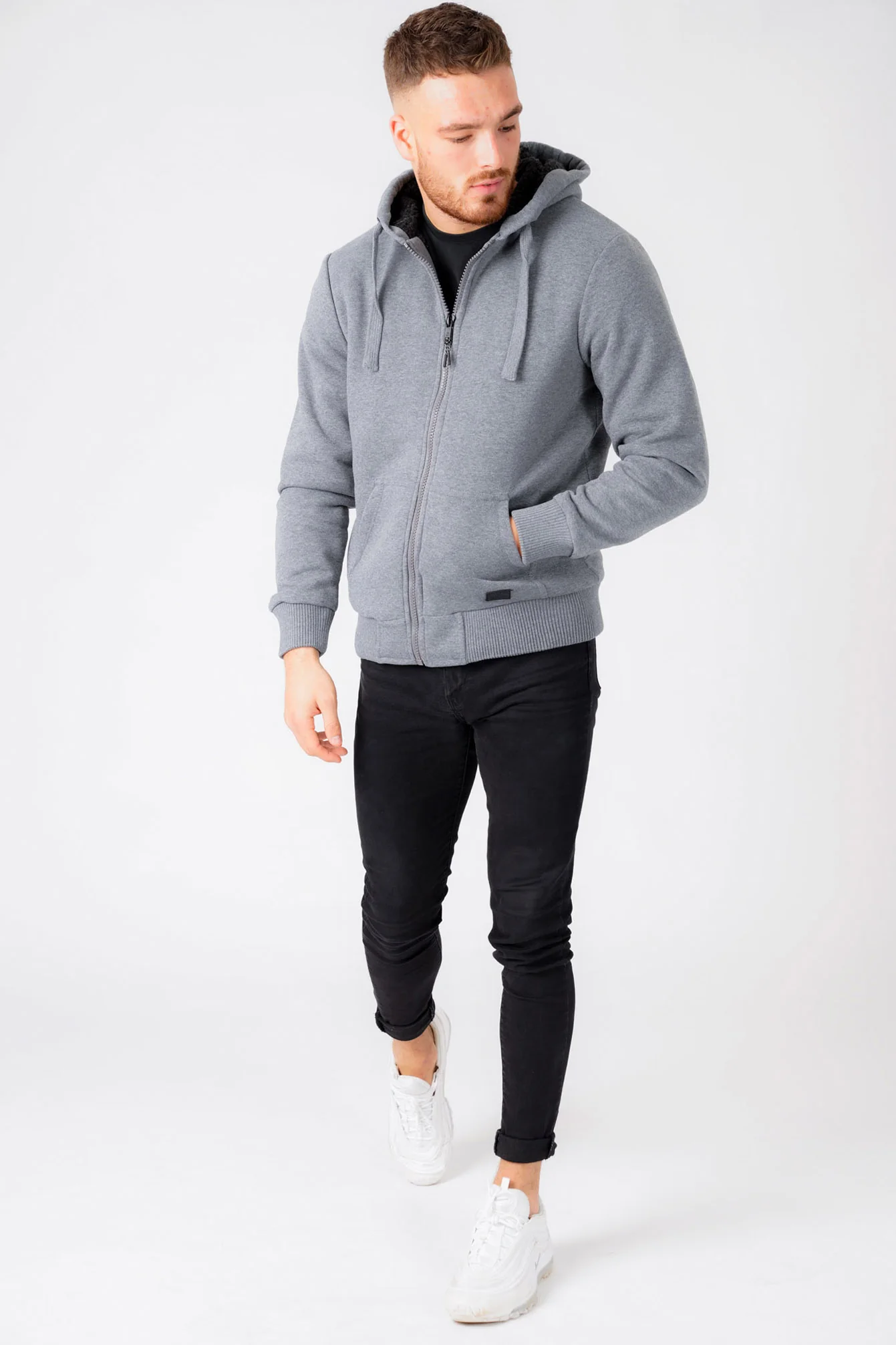 Update your outerwear for the new season with the ‘Bolo 2’ zip through hoodie with borg lining in mid grey marl by Dissident. The construction of this jacket was designed to give you extra warmth and that super snug feeling. It’s been made from a brushed back fleece and the body and hood are lined with thick borg lining which is soft to touch. Styled with long sleeves and an attached hood which will protect you from any unpredictable rainy weather. The hood has chunky rope style drawstrings that can be adjusted for your fit. It features a zip up closure, two pouch style pockets and a ribbed hem and cuffs. It’s finished off with a rubber branded badge towards the lower hem. This borg lined hoodie is perfect for cold winter weather. Wear it over a knitted jumper and a pair of casual jeans for everyday wear.