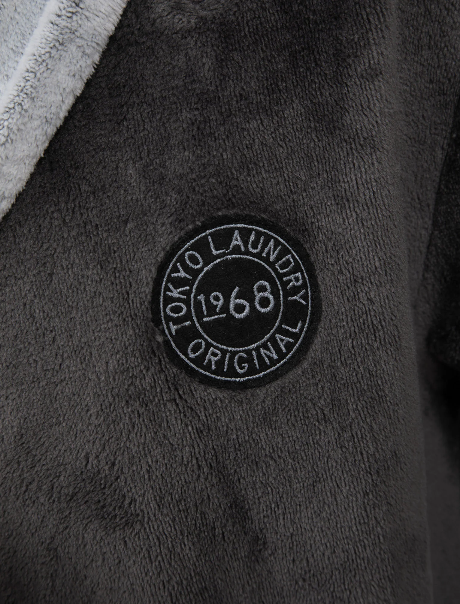 Indulge in luxurious comfort with this ‘Buckingham’ soft fleece bonded dressing gown with hood in dark grey by Tokyo Laundry. Ideal for keeping cosy during the colder months; it features two deep front pockets, wide shawl bonded collar in a lighter grey, and an adjustable tie belt for a snug fit. The soft to touch fleece gives this a plush feel, and it even has a hood for when you really want to wrap up warm! Our signature felt badge is embroidered on the left hand chest to finish. Perfect for mornings or evenings by throwing on over an essential tee and pyjama bottoms!