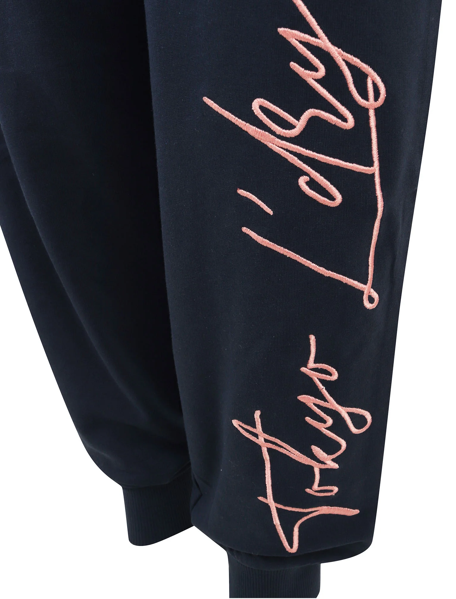 Cristo Embroidered Brushback Fleece Cuffed Joggers in Peacoat Blue - Tokyo Laundry