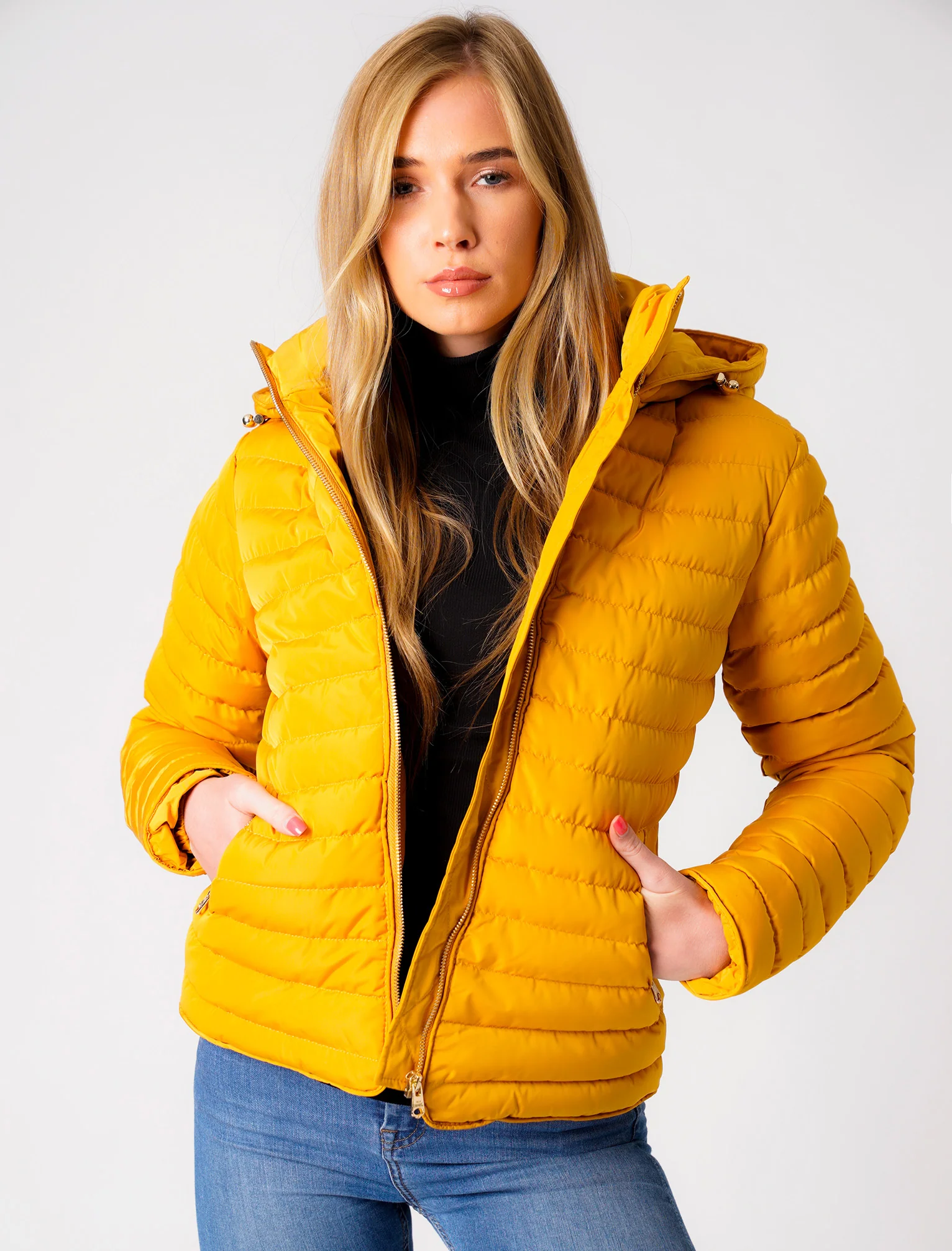Ginger 2 Quilted Hooded Puffer Jacket in Old Gold - Tokyo Laundry