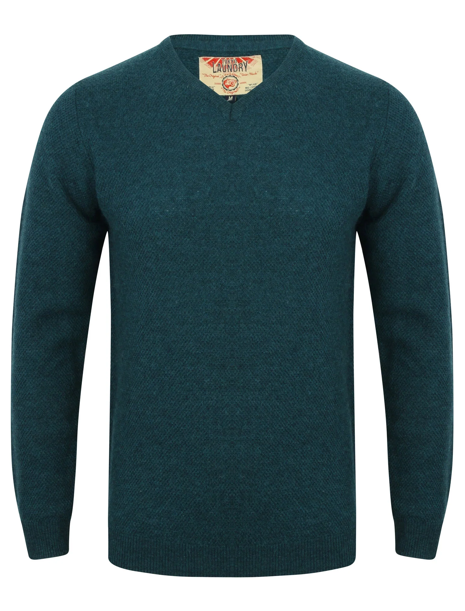 Hawes V Neck Lambswool Rich Knitted Jumper in Teal - Tokyo Laundry