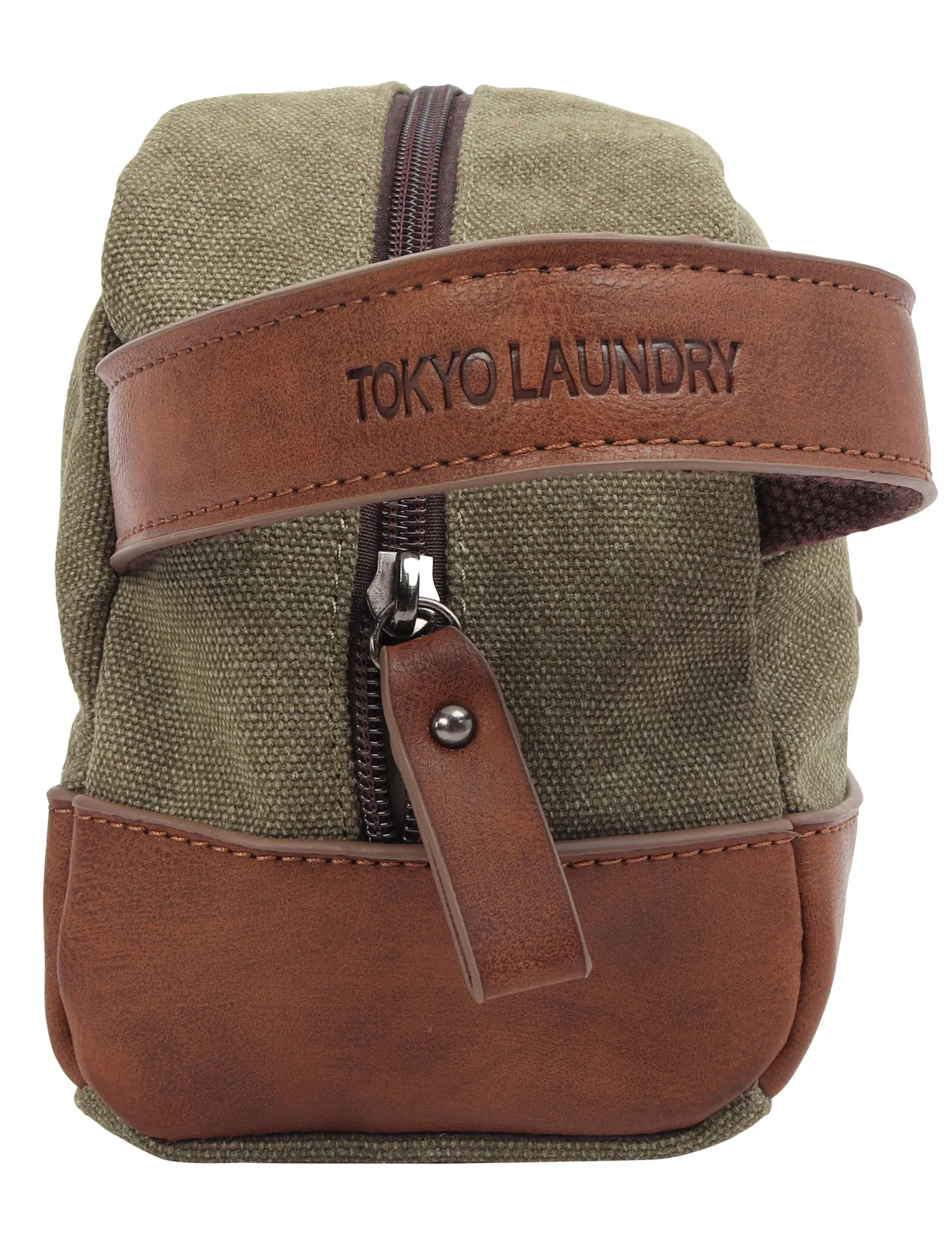 Phoenix Cotton Canvas Wash Bag with Faux Leather Detail in Khaki - Tokyo Laundry