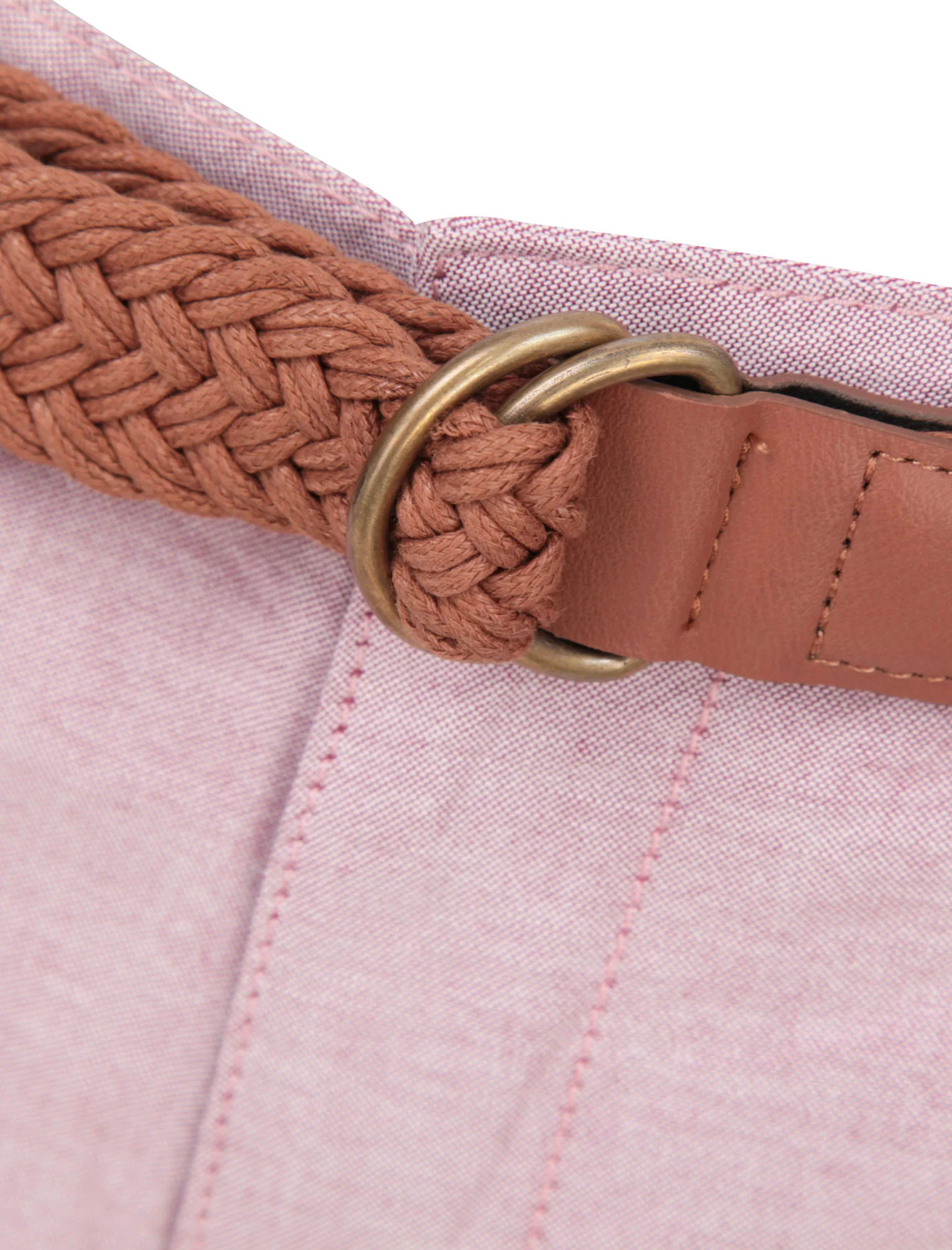 These āZavierā cotton chino shorts with woven belt in red oxford by Tokyo Laundry are an understated staple for your spring / summer wardrobe. Providing comfort and breathability during the sunnier days, these shorts have the unique enzyme wash finish which gives it a faded ālinen lookā yet still keeps them lightweight and soft. They boast a zip up fly with button fasten, two welted side pockets with two button back pockets, and turn up hems to complete the look. Additionally, these bottoms are complete with the brown woven belt included with D ring buckle and faux leather detail. Team up with a casual button down shirt or tee to elevate your look!